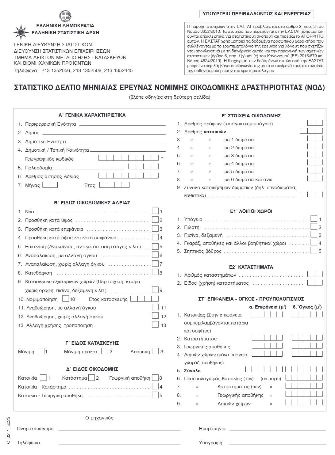 Προστέθηκε στις εκτυπώσεις το επικαιροποιημένο Μηνιαίας Έρευνας Νόμιμης Οικοδομικής Δραστηριότητας της ΕΛΣΤΑΤ