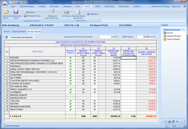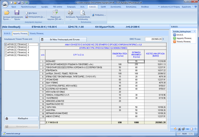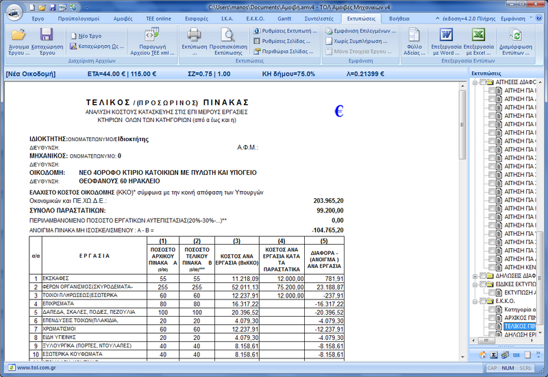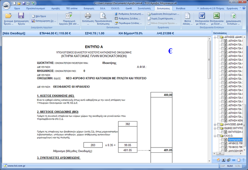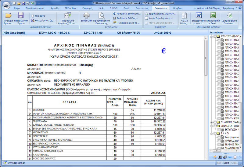 Όλα τα έντυπα του ΕΚΚΟ συντάσσονται και εκτυπώνονται από το φύλλο «Εκτυπώσεις». Από τη σελίδα αυτή μπορούμε με το πάτημα ενός πλήκτρου να επεξεργαστούμε τα έντυπα με το ms excel. |