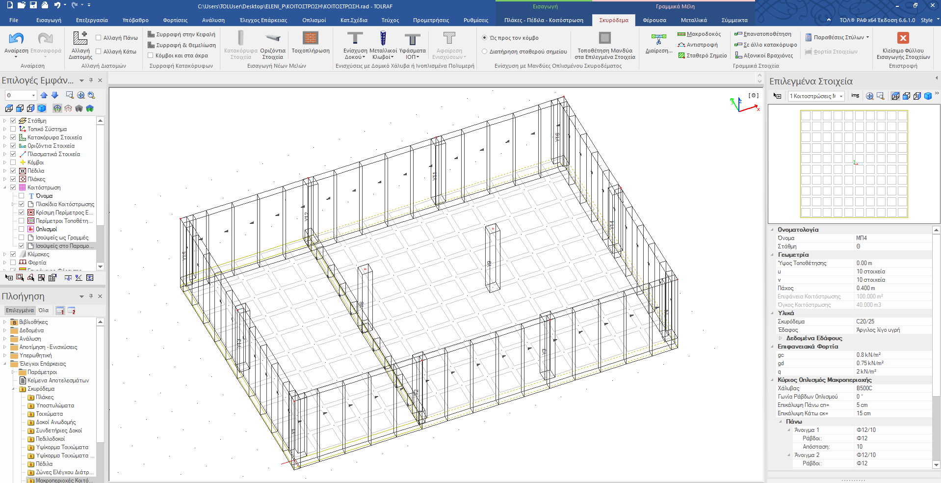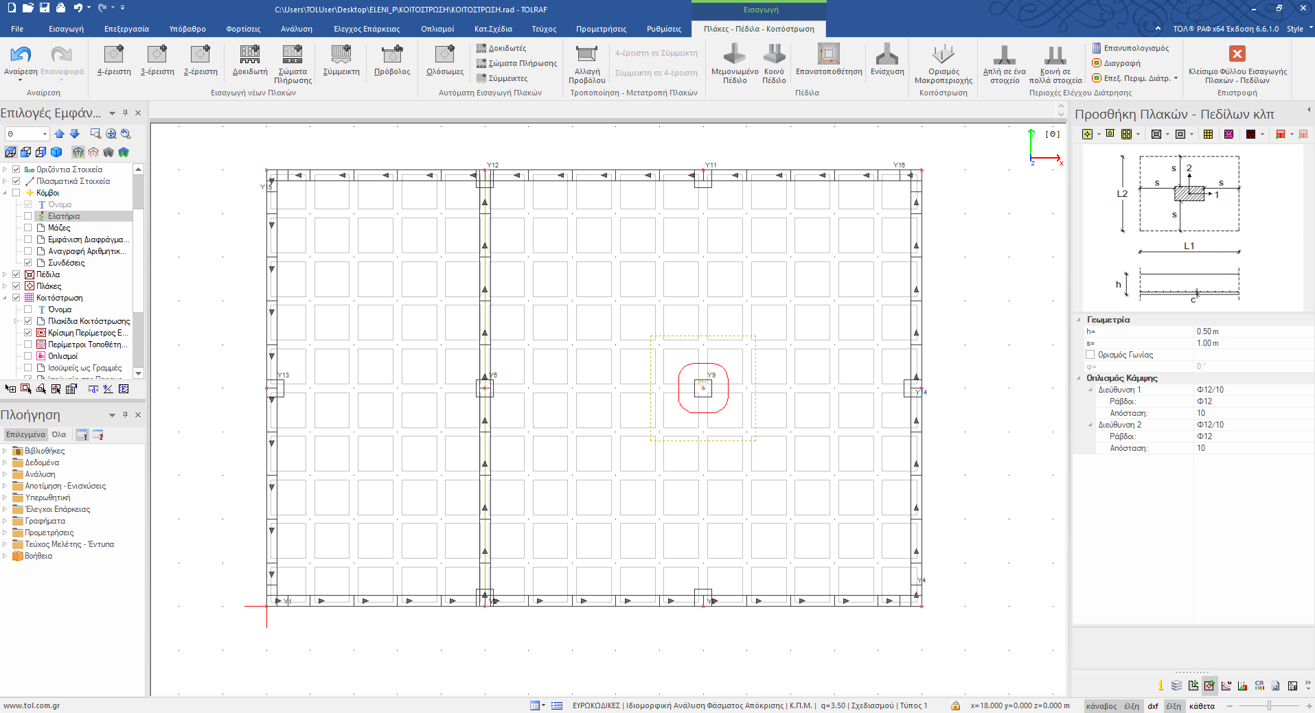 Η «Κοιτόστρωση» αποτελεί την υπομονάδα του ΡΑΦ, η οποία περιλαμβάνει την ειδική μέθοδο θεμελίωσης με πλάκες εδραζόμενες επί εδάφους. Για τη σωστή και ακριβή προσομοίωση των χαρακτηριστικών της πλάκας κοιτόστρωσης αλλά και για την αξιόπιστη παραγωγή αποτελεσμάτων της ανάλυσης και του ελέγχου επάρκειας έχει αναπτυχθεί μια πρωτοποριακή τεχνική προσομοίωσης που στηρίζεται στη δημιουργία ενός πλέγματος γραμμικών πεπερασμένων στοιχείων. Βασικό γνώρισμα της κοιτόστρωσης είναι ότι προσομοιώνεται, υπολογίζεται, ελέγχεται και σχεδιάζεται ταυτόχρονα με το υπόλοιπο κτήριο, εξασφαλίζοντας τη σωστή προσομοίωση της ελαστικά εδραζόμενης πλάκας καθώς και την ιδιαίτερα σημαντική αλληλεπίδραση μεταξύ ανωδομής και πλάκας θεμελίωσης του κτηρίου. Οι δυνατότητες και τα πλεονεκτήματα της υπομονάδας της κοιτόστρωσης παρουσιάζονται αναλυτικά στη συνέχεια. Περισσότερες πληροφορίες για την Κοιτόστρωση και τη μέθοδο αντιμετώπισής της από το ΡΑΦ μπορείτε να διατρέξετε το εγχειρίδιο θεωρητικής τεκμηρίωσης και τον οδηγό χρήσης της υπομονάδας, που βρίσκεται στον ακόλουθο σύνδεσμο: Σχετιζόμενα: Προσομοίωση θεμελίωσης με κοιτόστρωση στο ΡΑΦ. |