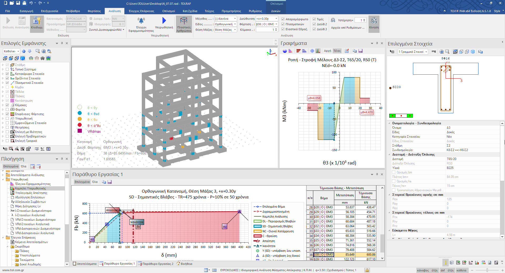 - Επιλογή περιόδου επαναφοράς σεισμικής δράσης TR σύμφωνα με τον ΕΚ8, το εθνικό προσάρτημα και τον ΚΑΝ.ΕΠΕ., και άμεσος εντοπισμός της μετακίνησης ικανότητας και ενημέρωση της υπερωθητικής καμπύλης.